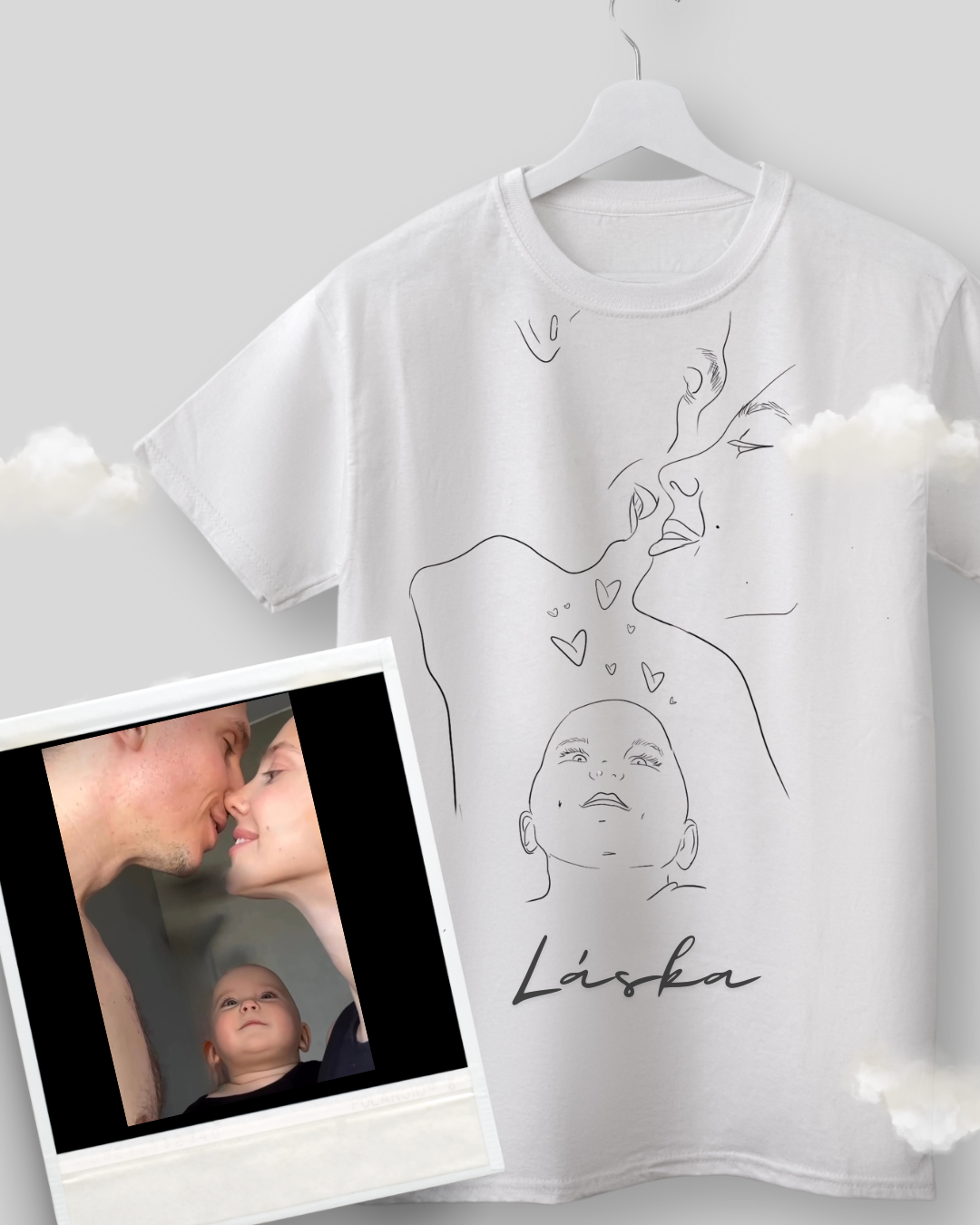 Reálná fotografie, ze které vytvořím jedinečný design. Vaši fotku pečlivě převedu do grafické podoby s minimalistickým a moderním vzhledem, připravím návrh a pošlu Vám ho ke schválení. (pozice tisku po domluvě)