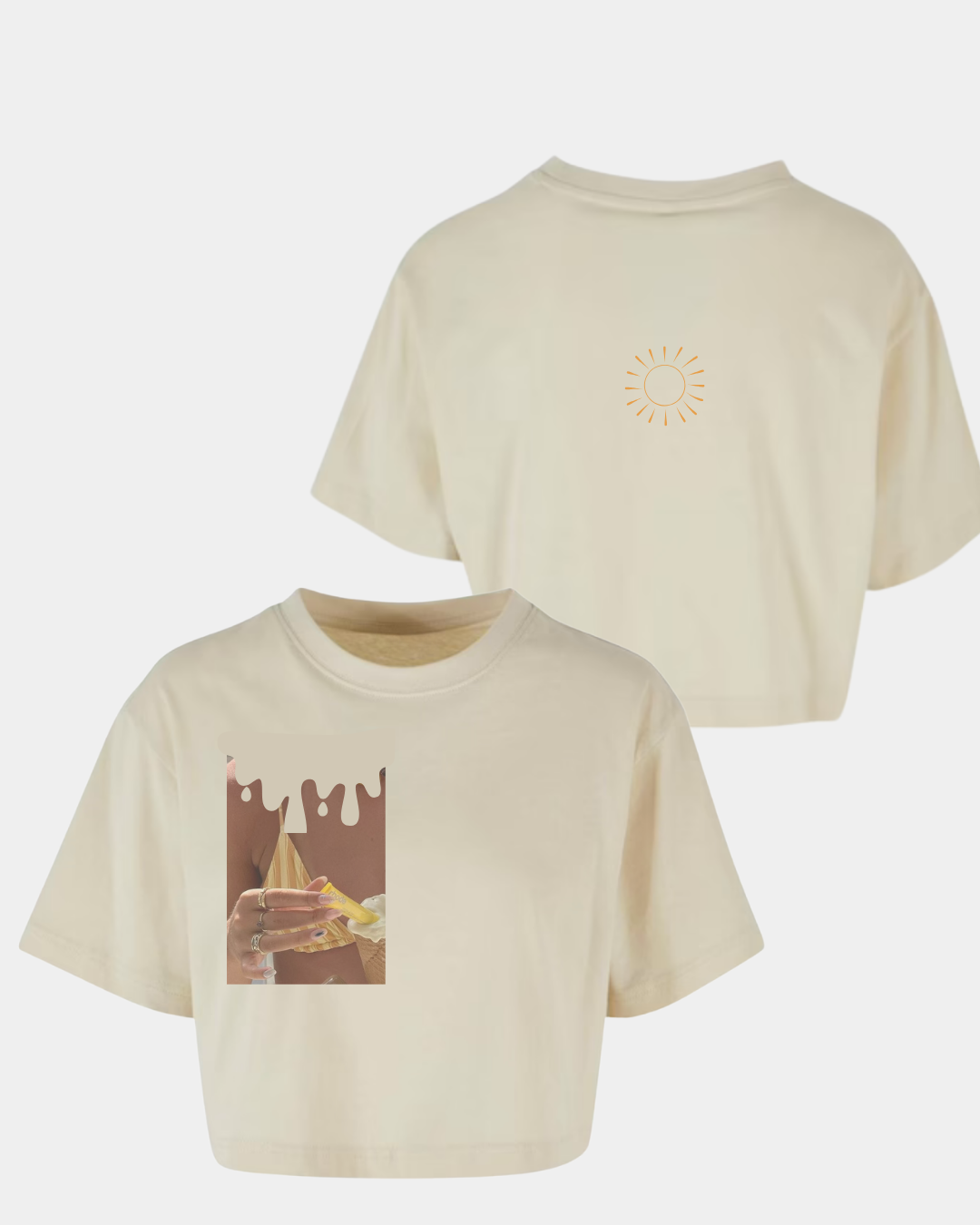 Bavlněný crop top s volným střihem, potiskem vpředu a jemným detailem na zádech.
